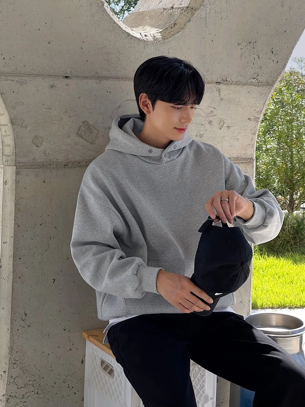 這是針對保暖性設計的休閒款半拉鍊連帽衫。