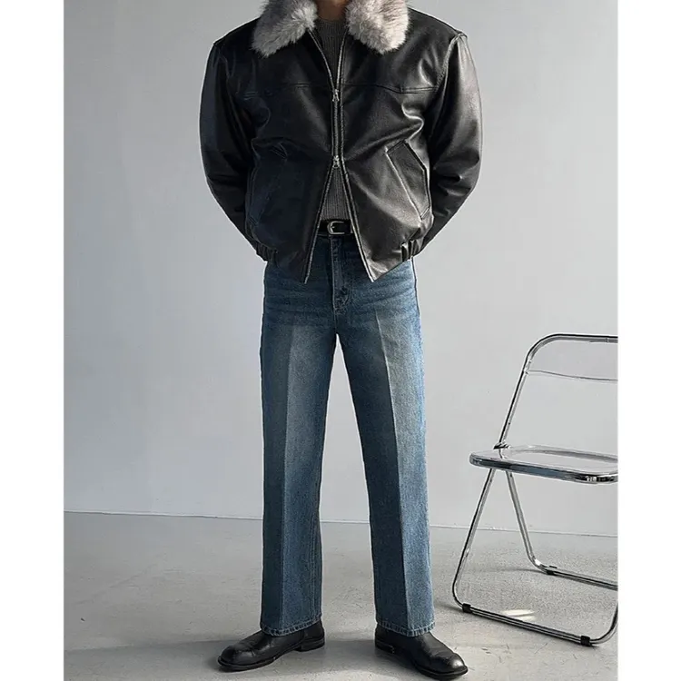 🧥 皮革外套 → [復古貉子毛領襯墊短版皮革夾克]